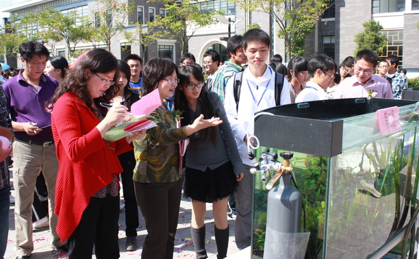 作为我校“085工程”内涵建设“高校特色学科专业大学生创新活动实践与培养模式改革的研究”项目的新举措,本次水族造景大赛旨在传承和弘扬水族文化,激发我校大学生的创新思维,充分发挥专业优势,并将其丰富的想象力付诸于实践,从而提高其动手操作能力。本次竞赛活动于5月正式发布,得到了广大学生的积极响应,来自3个学院36个小组139名学生(包括硕士生和本科生)积极报名和热情参与。在经历了初期准备、前期培训、初赛答辩等一系列环节的考验和层层筛选后,共有9组同学过关斩将,闯入决赛。10月18日,在我校第十一届鱼文化节上,综合校内外专家的评估意见和大众评审的投票结果,共评出金奖一名、银奖两名,铜奖三名,优胜奖两名,最佳人气奖一名。