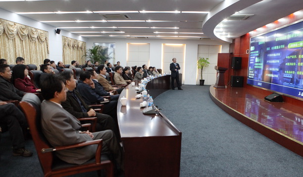 11月10日,浦东新区经济与信息化委员会吴泉国主任率中心组成员一行30余人到访我校。校党委书记虞丽娟、校长潘迎捷、副校长封金章等接见了来宾,并陪同参观了远洋渔业展示厅和渔业遥感GIS技术实验室,双方在数字海洋研究所报告厅进行了座谈交流。