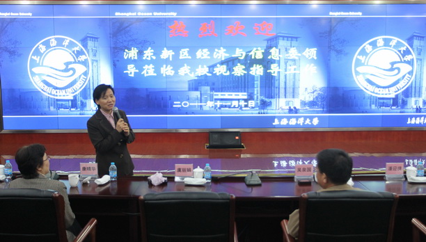 11月10日,浦东新区经济与信息化委员会吴泉国主任率中心组成员一行30余人到访我校。校党委书记虞丽娟、校长潘迎捷、副校长封金章等接见了来宾,并陪同参观了远洋渔业展示厅和渔业遥感GIS技术实验室,双方在数字海洋研究所报告厅进行了座谈交流。