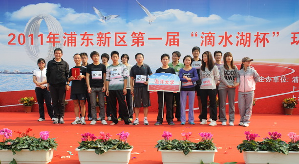 浦东新区第一届“滴水湖杯”环湖跑活动,由临港地区30多家企事业单位参加,约1500多名运动健儿参赛,我校由工会组队,派出了由青年教师和学生28人组成的队伍参加了这次“滴水湖杯”环湖跑活动。
