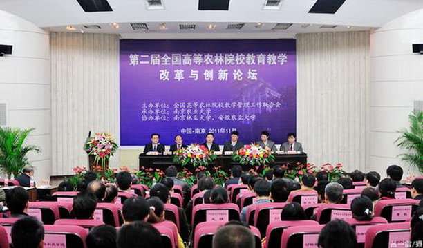 全国高等农林院校教学管理工作联合会第二届全国高等农林院校教育教学改革与创新论坛,于2011年11月13日在南京农业大学举行。教育部高教司司长张大良,江苏省教育工委副书记、教育厅副厅长胡金波,教育部高教司农林医药处处长王启明等领导出席论坛。来自全国40所农林及涉农高校教务处长及相关人员近100人与会,我校教务处长张宗恩等参加了论坛。
