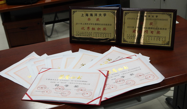 会议中,我校共有20余项大学生暑期社会实践活动项目受到表彰。由信息学院的“让食品说话——水产品实时检测调研”团队在众多团队中脱颖而出与复旦大学、同济大学、东华大学等4所高校荣获第三届“知行杯”上海市大学生社会实践大赛特等奖,该奖项也是我校在“知行杯”大赛上首次摘得;工程学院的“城市建设我知行,小小站台暖人心——城市公交站台优化设计方案”、食品学院的“SPPS——上海市停车场导航图(人民广场篇)”团队分获第三届“知行杯”上海市大学生社会实践大赛一、二等奖;海洋科学学院的“给力“十二五”,地铁给力我先行”,爱恩学院的“上海市民对施工扰民现象容忍度的调研”团队荣获了第三届“知行杯”上海市大学生社会实践大赛优秀奖。此外我校海洋科学学院的“追寻昔日先辈足迹,重温渔政光辉历程——采访志愿服务为我国海洋事业奉献青春的老党员”项目荣获2011年上海市大学生暑期社会实践活动最佳项目奖; “献礼百年校庆,感恩九十年,十二五进社区”等9个项目获2011年上海市大学生暑期社会实践活动优秀项目奖;“丰尔羽翼,鹰击长空”等4个项目获得“牵手行动,成长计划”优秀项目奖。刘潇、林丰、顾祈明、朱仁君4位同学分别获得“2011年上海市大学生暑期社会实践活动先进个人”称号;张宇峰、屈琳琳老师获得“2011年上海市大学生暑期社会实践活动优秀指导教师”荣誉称号。我校也连续第十次获得“上海市暑期社会实践活动优秀组织奖”。