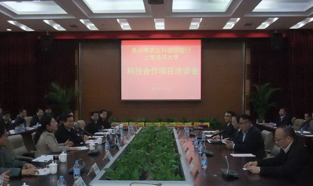 泰州市廖涛副市长首先对泰州市的基本情况做了概述,并指出,泰州有一万多条河,兴化县的水产养殖占地比例很大,在水产养殖上有很大优势,目前泰州市希望将合作上升到政府层面,把农业的产业发展作为重点来做;兴化县是养蟹大县,既有优厚的自然条件,又有市委政府和企业的支持,相信与上海海洋大学的合作会圆满成功。