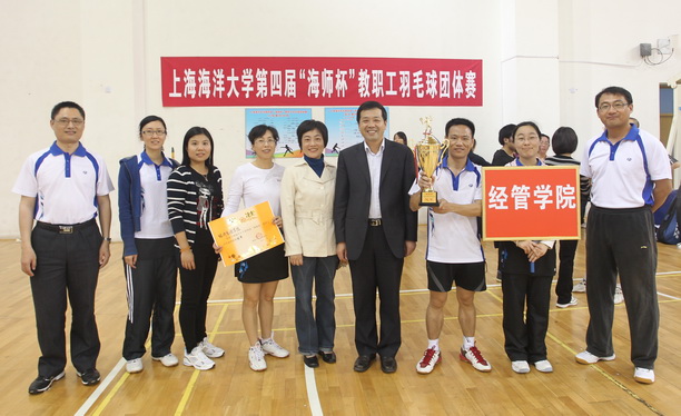 11月29日下午,四支队伍继续进行了半决赛、决赛的争夺。经过激烈角逐,经管学院凭借整体实力夺得冠军,连续第三次获得“海师杯”,学院联队(爱恩、外语、现教中心)获得亚军,海洋学院获得季军,后勤服务中心名列第四并获得精神文明奖。本次比赛共有11支队伍、120多名运动员参赛,比赛得到各学院、部门的大力支持,本次比赛进一步增进了各学院部门之间的友谊,促进了学院、部门之间的体育交流。海洋大学“海师杯”教职工羽毛球赛每年定期举办,欢迎更多老师参加这项运动。