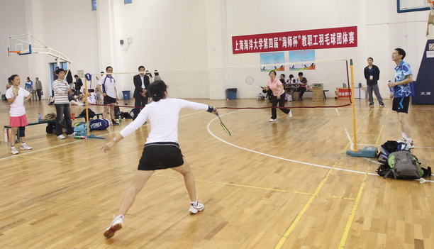 我校第四届“海师杯”教职工羽毛球团体赛于11月22日下午在校室内体育馆开赛,校党委副书记、副校长黄晞建出席开幕式并致辞。经过小组循环赛和四分之一决赛的争夺,经管学院、后勤服务中心、学院联队(爱恩、外语、现教)、海洋学院进入四强。 闭幕式上,校党委副书记吴嘉敏为获奖队伍颁奖。