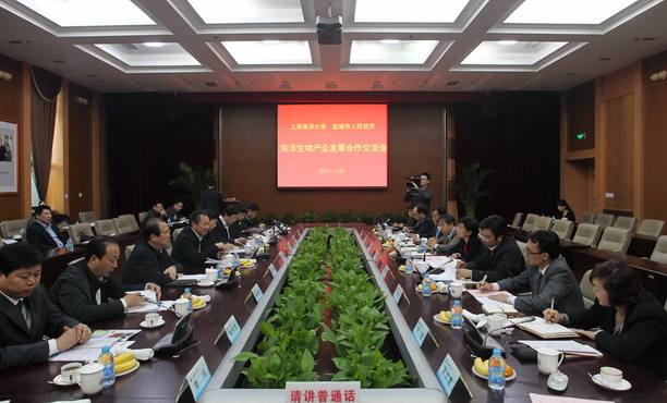 2011年11月28日,盐城市委书记赵鹏带领盐城市人民政府、大丰市人民政府、盐城市科技局、大丰市科技局领导访问我校,进行海洋生物产业发展合作交流。