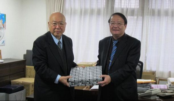 潘校长向日本中央鱼类株式会社伊藤裕康会长赠送纪念品