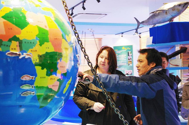 来宾们参观了爱恩学院、图书馆、学生宿舍、体育馆、公共实验室、教学楼、餐厅、海洋学院远洋渔业展示厅和航海模拟室等教学及生活基础设施。来宾们询问了学生教学和服务设施的管理和运行模式,并亲自见证了数字化校园给学生学习和生活所带来的便利。