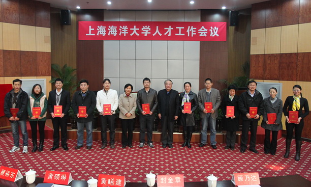 校党委书记虞丽娟、校长潘迎捷为入选首届上海海洋大学海洋计划的教师颁发了聘书