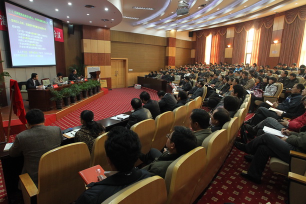校长潘迎捷做了题为“坚持以人为本,实施人才强校战略,加快建设高水平特色大学”的主题报告,他首先从“以师资队伍建设为核心,培养和凝聚优秀人才;以干部队伍建设为重点,深化干部人事制度改革;以学生骨干队伍建设为基础,营造优良学风”三个方面全面回顾与总结了“十一五”期间人才队伍建设情况,“十一五”以来,学校坚持在创新实践中培育人才,在事业发展中凝聚人才,在工作生活中关爱人才,在公平竞争中识别人才,使我校人才队伍建设取得了重大进展。同时,潘校长指出,我校的才队伍建设与高水平特色大学建设的要求还存在一些差距,如:高层次人才需要进一步加强引进与培养,师资队伍能力与水平需要进一步提高,干部队伍工作作风仍需进一步改进,学生骨干队伍培养措施仍需进一步拓展。为应对新的挑战,适应现代大学建设的要求,潘校长从理念、措施层面提出了师资队伍、干部队伍、学生骨干队伍的建设策略,要求细化落实实施人才强校战略,深入推进人事制度改革,力营造人人能成才的优良环境,加快形成中青年教师自我发展的良好机制,采取多种举措继续加强干部队伍、学生骨干队伍培养与建设力度。