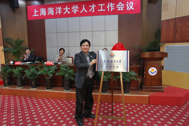 校党委副书记、副校长黄晞建为“上海海洋大学元鼎学院” 揭牌