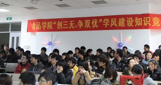 12月开始,食品学院开展了易班学风之我见、考风承诺签名、知识竞赛等活动,不仅增加了学生树立良好学风考风的意识,更在同学中营造了“创无迟到、无旷课、无喧闹,争优良学风、考风”的良好氛围。