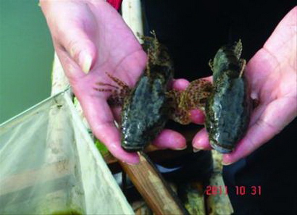 养蟹池混养塘鳢鱼体重1.5-2.5两