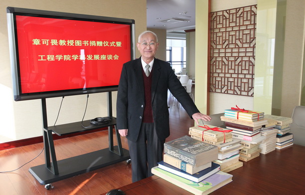 捐献出的这些书籍,伴随着章教授的整个求学与工作生涯,见证过他的成功与一路走过付出的艰辛。章教授说:“我的成长之路就得益于学校的培养,得益于校领导的培养,学校100周年,我应该要感恩,我打算写一个回忆录,回忆学校对我关怀、信任和培养,所以这些书我留着干什么呢,当然要捐给学校,我们学校航海的专业、轮机专业和船体设计专业都应该搞起来,原来这些专业学校是搞过的,当时有海洋捕捞、船舶设计和轮机管理,现在船舶设计这些专业也没有了,浙江海洋学院原来没有基础,人家没有基础也搞起来了。我和陈明义1976年就办了船舶的专业,我们是有基础的,所以我把这些书捐给学校,希望学校能把船体设计和轮机这些专业搞起来,何谓海洋?我们现在叫海洋大学,这些专业怎么能没有?海洋大学战场就在海洋,工具就是船舶,这些都避开它,怎么搞海洋?哪怕你去海洋调查,没有船怎么行?”