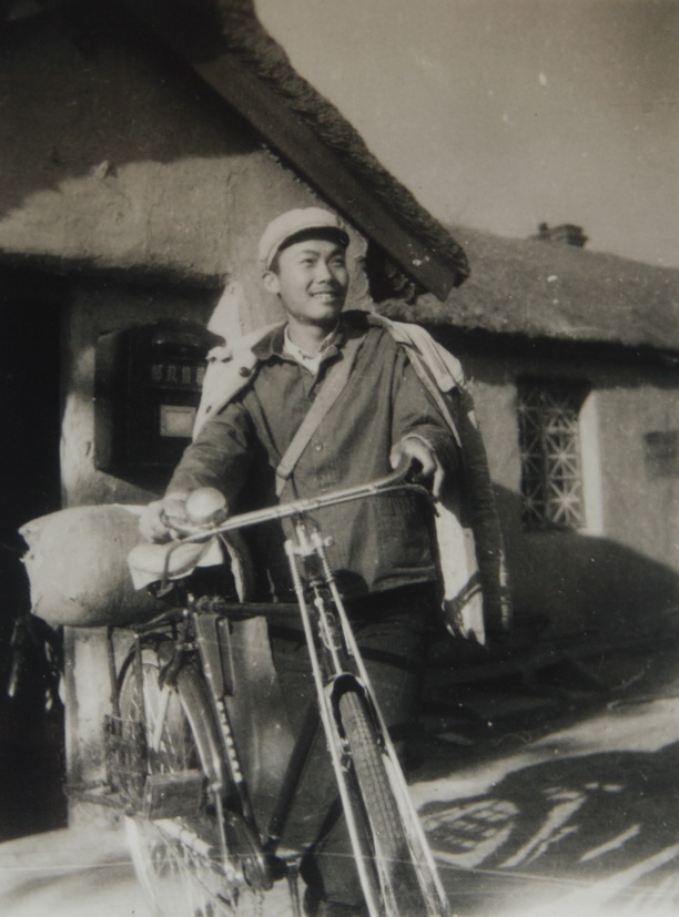 在黑龙江生产建设兵团团部邮局门口准备启程送信,拍摄于1971年5月