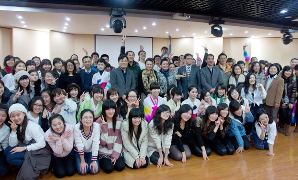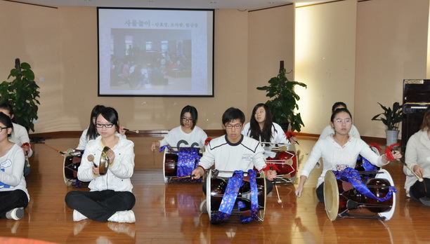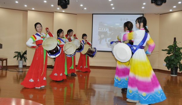 近日,由外国语学院与韩国祥明大学联合举办的“文化之旅”活动闭幕式暨汇报演出在工会活动室隆重举行,为本次中韩跨国文化交流画上圆满句号。程裕东副校长,外国语学院齐亚丽院长,外事处钟俊生处长,朝鲜语系全龙华系主任、朝鲜语系所有师生等出席了本次文化汇演。