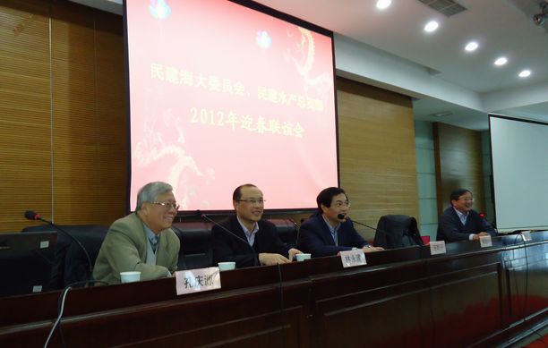 新年伊始,2012年1月6日下午,在军工路上海海洋大学远洋渔业培训中心二楼会议厅,民建上海海洋大学委员会和民建综合工委水产总支部联合举办第16次迎春联谊活动。上海水产(集团)总公司党委书记兼董事长汤期庆、我校党委副书记吴嘉敏、组织部副部长韩振芳、民建上海市委组织部副部长林永建和有关部室领导出席会议。民建上海中医药大学支部新老主任郑舜华、陈一鸣和知名教授、专家蔡骏、陈佩以及民建上海航运工委会主任方怀瑾也应邀参加活动。