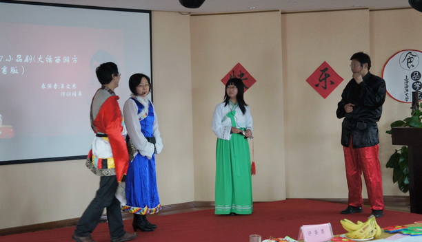这是食品学院首次举办由学院教师自编、自导、自演的文艺晚会,通过由各学科点、系室老师以团队形式的表演,评委分别从参与率、节目形式、内容与精彩度等四个方面进行现场评分,最终确定金龙奖、飞龙奖与恐龙奖的获奖团队。整场晚会载歌载舞,演出节目形式多样,内容精彩丰呈,气氛热烈,高潮迭起,充分展示了学院教师的才艺与智慧,体现出食品人团结、敬业、奋进、创新的精神。其中,化学系的对口相声《小偷公司》,李立与宋益善老师将作品作了适当改编,并进行了淋漓尽致的演绎,极好地活跃了开场气氛;实验室管理中心老师的小品三句半《校园欢乐多》创作思路源于校园生活,通过幽默风趣的话语,让大家深刻体会到校园学习生活的欢乐;制冷及低温工程系老师则以大合唱的形式表演了歌曲《明天会更好》,用歌声共同祝愿海大的明天更美好;水产品加工及贮藏工程系老师的方言版小品剧《大话西游》通过不同台词的方言诠释,别有一番风味,集体诗朗诵《你是谁》体现了教师求实敬业的高尚师德;食品科学与工程系的模仿秀搞笑舞蹈《忠字舞》,教师们整齐划一的着装与舞步,引来评委们的阵阵好评,现场笑声不断……;而行政办公室的模仿秀另类小品《我们也疯狂》更以经典的演出台词、别出心裁的设计与时尚滑稽的舞蹈,将本台晚会推向最高潮,并获得了联欢会活动的金龙奖,也使晚会划上了圆满句号。期间,晚会节目中的小品《如此考试》、《两勇一馨》、《智慧开胃小菜》与曹广荣老师的京剧演唱、施志仪老师的歌曲表演也给观众们留下了深刻印象。