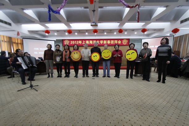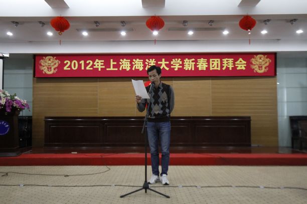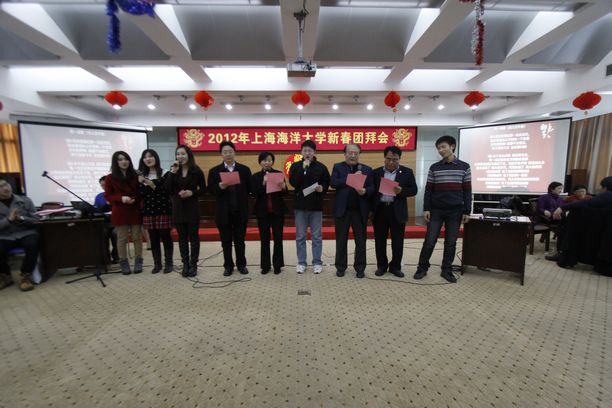 1月17日下午1:30,我校在军工路培训中心会议室召开上海海洋大学2012年新春团拜会。校党政领导、离退休老领导、各民主党派主委、机关部门领导代表、各学院领导、在职教职工代表、退休教工代表、学生代表约100余人出席了团拜会。