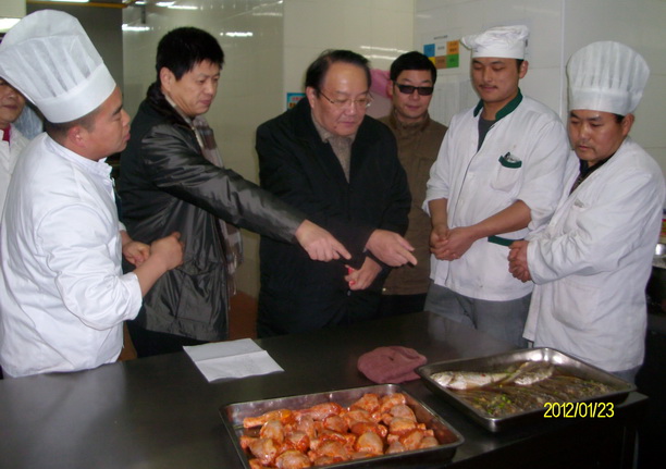 2012年1月23日正月初一上午,潘迎捷校长在后勤管理处处长俞渊、后勤服务中心总经理王国华陪同下走访学校物业门卫、总监控室、第三餐厅、研究生培训与交流中心、学生社区、门诊部等后勤保障基层岗位,并为节日坚持工作的一线员工带来诚挚的慰问和新年的祝福。