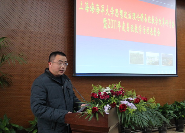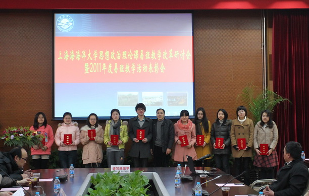为进一步完善我校“基于易班的高校思想政治理论课教学手段现代化研究”教改试点项目,提高网络思想政治教育的广度和深度,3月13日下午,我校在图文信息中心102会议室召开了“上海海洋大学思想政治理论课易班教学改革研讨会暨2011年度易班教学活动表彰会”。教务处处长张宗恩、学生处副处长罗汝坤、全体思政课教师和60余名学生代表参加会议。研讨会由社科部主任董玉来主持。