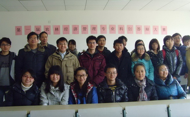 为了进一步推广科技创新项目,培养学生的创新能力,第一届农林经济管理专业科创答辩大赛于2012年3月13日,在教学楼4103成功举办。本次科创答辩大赛邀请到系主任杨正勇、副主任沈雪达、王春晓等十余名老师担任大赛的评委。共有九个小组,30余名同学参加了本次的科创答辩大赛。另外,全系四个年级,近150人到场观看。参加本次答辩大赛的项目涉及到上海市农超对接影响因素、近郊观光型农庄发展现状及对策、校园厨余垃圾资源利用的经济化转换可行性研究、海洋捕捞渔船经营状况研究等多个方面。