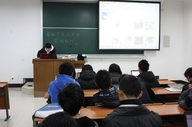 “让你的帖子不再灰暗!”为提高易班工作站成员的发帖质量,培养学生骨干发起活动的全面思维模式,2012年3月14日晚,我校易班学生工作总站在2301教室面向全校师生组织了易班发帖技术培训,易班工作站全体成员和感兴趣的师生出席培训会。易班学生工作总站副站长钟璐琴结合自己的版主经验,详细介绍易班发帖的方法和技巧,解答在发帖中遇到的疑问和难题。