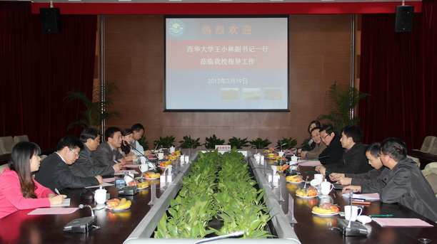 3月19日,西华大学党委副书记王小林一行5人来我校交流学习。我校党委副书记、副校长黄晞建教授会见来宾,就易班建设和心理健康教育工作与来宾展开座谈。校社科部、学生处、宣传部等相关部门负责人出席座谈会。