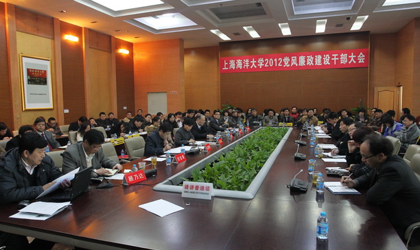 3月26日下午,上海海洋大学2012年党风廉政干部大会在图文信息中心102会议室举行。会议传达了中纪委十七届七次会议、市纪委九届七次全会和市2012年教卫系统党风廉政建设干部大会精神,对今年党风廉政建设的各项工作任务进行部署,校党委书记虞丽娟代表校党委对反腐倡廉工作推进提出要求,校长潘迎捷主持会议,全体校领导、中层干部、廉政督导员、重点部门重点岗位工作人员及部分党代表、各民主党派主委140余人与会。