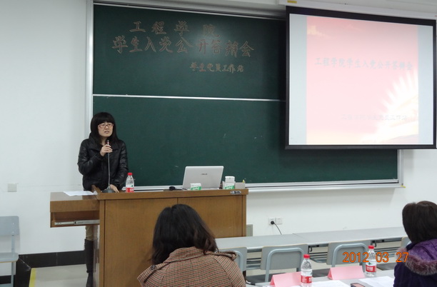 3月27日晚6:00,工程学院在2206和2211举行了学生入党公开答辩会。答辩委员会由学院党委、关工委、辅导员和学生党员代表组成,观摩同学由各党支部成员、党员工作站成员和普通同学组成。