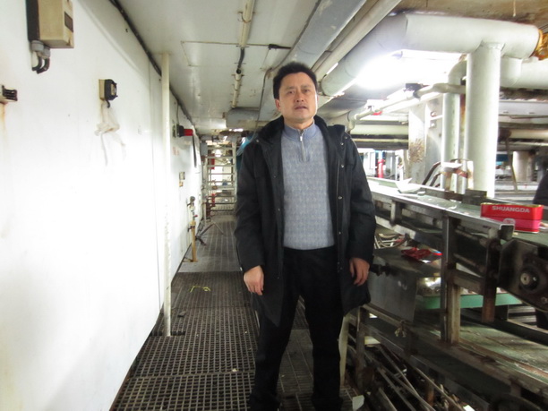 2011年11月,在远洋渔业捕捞船上考察自动包装生产线