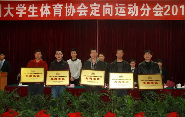 2012年3月24日,中国大学生体育协会定向运动分会2011年年会在湖南省长沙市举行。我校作为中国大学生定向协会的会员单位,派出代表参会。我校代表与来自全国各地的120多名会员单位代表、教练员、裁判员进行了交流,学习了先进的教学、科研和运动训练的经验,为我校定向运动的开展提供了有力的支持。经过评比,我校被评为2008——2011年度全国定向运动先进单位,同时体育部第二教研室王锋老师被评为2008——2011年度全国定向运动优秀教练员。