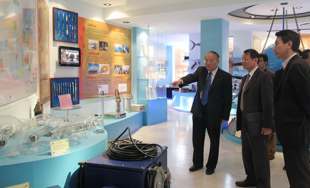 来宾们先后参观了我校远洋渔业展示厅、捕捞与航海模拟器实验室、藻类标本室,并在图文信息中心十二楼鸟瞰校园全景,对学校的整体规划和布局给予了高度赞赏。