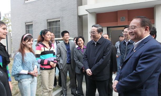4月12日下午,中共中央政治局委员、上海市委书记俞正声在市委秘书长丁薛祥陪同下专程来到我校,亲切看望新疆喀什地区来沪培养学员,了解学员们的学习和生活情况。