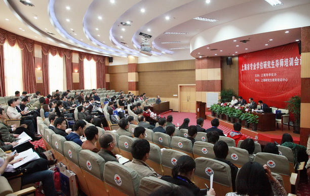 上海市教委高教处束金龙副处长、上海市学位办赵坚博士,上海市教育评估院李耀刚副院长,我校吴嘉敏副书记、研究生部施志仪部长等应邀出席了会议。来自上海交通大学、复旦大学、同济大学、华东理工大学、东华大学、上海大学等十三所高校的118位研究生导师及管理干部进行参加了培训和交流。