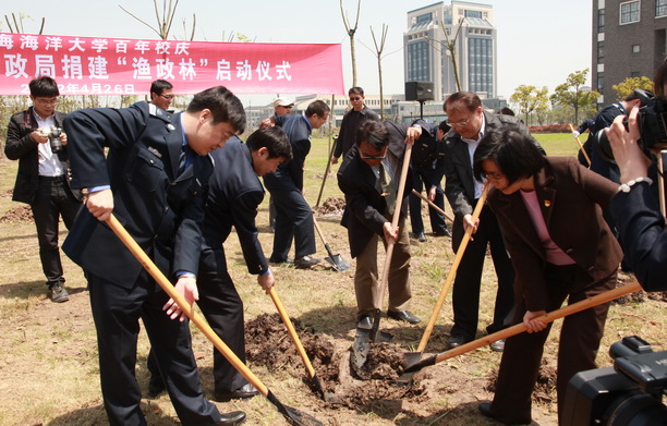2012年4月26日,农业部东海区渔政局捐建“渔政林”启动仪式及植树活动在我校隆重举行。农业部东海区渔政局李富荣局长、张秋华副局长、周彤巡视员率中层干部代表和青年代表30多人参加活动,我校党委书记虞丽娟、校长潘迎捷、副局级巡视员顾乃达出席,副校长黄硕琳主持。