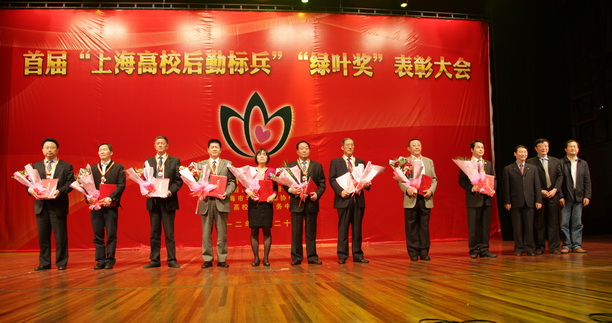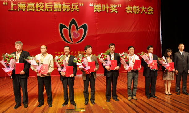 为了表彰在高校后勤管理与服务中做出杰出贡献的后勤干部员工,上海高校后勤服务股份有限公司会同上海市教育工会、上海市学校后勤协会和上海高校后勤服务中心联合发起在全市高校开展评选2011年度“上海高校后勤标兵”活动,并设立上海高校后勤“绿叶奖”。从100多位候选人中,评选出30名上海高校后勤标兵“绿叶奖”获得者及15位提名奖获得者,我校后勤服务中心总经理王国华和饮食服务中心经理陈志华荣获上海高校后勤标兵“绿叶奖”称号。