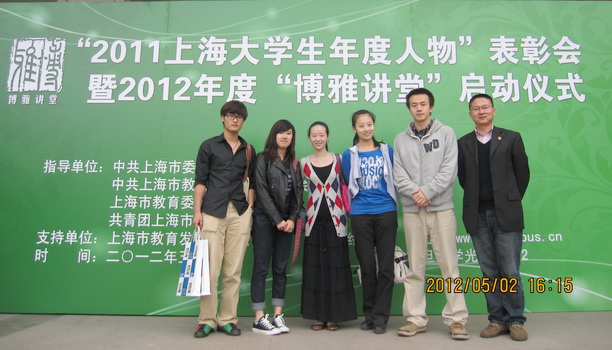 5月2日下午,“2011上海大学生年度人物”表彰会在复旦大学召开。我校舞蹈团获得“年度人物提名奖”,水产与生命学院2009届硕士研究生王文龙获得“建功立业提名奖”。这是我校学生风采的集中体现,也是我校全体师生员工全员育人的成果体现,更是每一位海大人的骄傲!