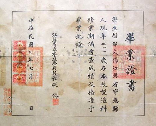 江苏省立水产学校毕业证书