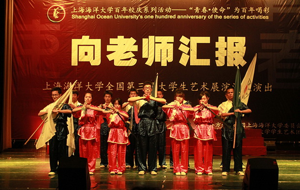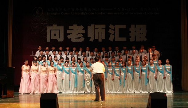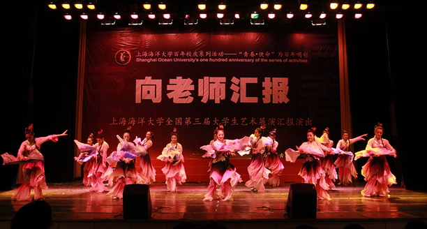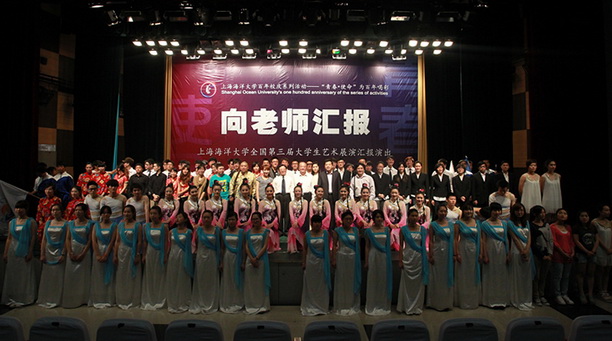 “向老师汇报”上海海洋大学全国第三届大学生艺术展演汇报演出于5月8日在学生活动中心报告厅举行。校长潘迎捷教授,党委副书记吴嘉敏教授,党委副书记、副校长黄晞建教授、校长助理吴建农教授、校艺术团指导老师和全体老师们出席了汇演。