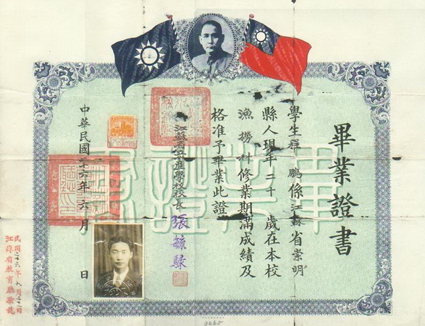 据《江苏省立水产学校十年大事表》,吴淞水校1912年12月15日录取第一批新生68名,于1913年1月16日正式开学。至1917年1月第一届学生毕业,计渔捞科11人,制造科14人。在第一届毕业生中,涌现出众多水产业的早期骨干,如姚詠平、张楚青、陈谋琅、陈椿寿、王刚等。
