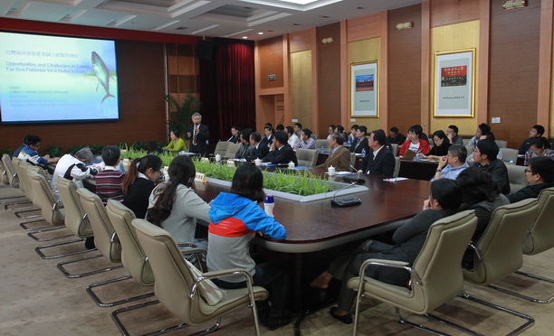 李国添校长在报告中系统而详尽的介绍了台湾远洋渔业的发展轨迹与现状,同时提出了台湾远洋渔业产业链发展所面临的挑战和问题,并在发展政策上的提出了许多可行性建议。李国添教授在报告中介绍,目前台湾的远洋渔业分布在全球六大公海捕鱼地区,总作业船只约2000多艘,并与25个以上沿岸国家长期进行双边渔业合作。台湾鲔渔业(金枪鱼)捕捞居全球第二位,鱿钓渔业居全球第三,处在世界远洋渔业的领先地位,其中超低温鮪魚渔获量更是世界第一,傲视全球。同时也指出目前公海渔业资源面临减少,而国际环境开始普遍重视海洋资源保护的趋势下,台湾远洋渔业也面临捕捞生产扩展的困境。为适应国际渔业资源保护规范的双重挑战。未来台湾远洋渔业应积极提升经营体制与销售实力,以高附加值取代大量捕捞,并加强在保护上与其他国家和国际组织相互合作,实现海洋资源利用的可持续发展。