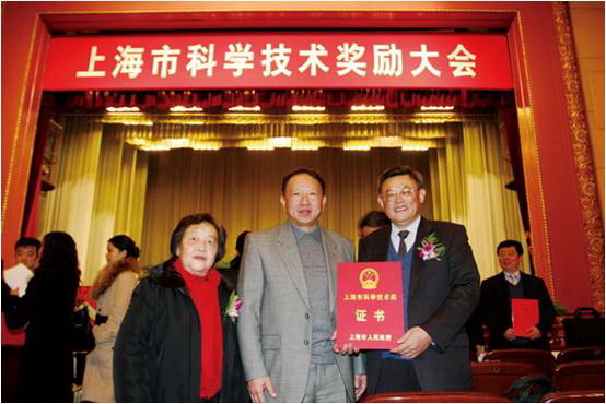 蔡教授和李思发教授并肩获得上海科技进步一等奖(中为我校原党委书记叶骏教授)