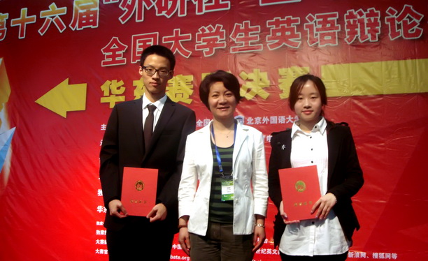 经校内选拔,外国语学院学生陈天一、刘权在指导老师邹磊磊的带领下参加了5月10日至13日在南京师范大学仙林校区举办的第十六届“外研社•亚马逊杯”全国英语辩论赛华东赛区的比赛,并喜获三等奖。