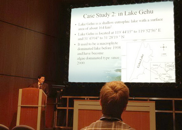 我校刘其根教授在内陆渔业分会场作了“中国湖泊、水库的保水渔业:理论与实践”(Aquatic-Environment-Protection-Oriented (AEPO) lake fishery in China: Theoretical aspects and preliminary practices)的会议报告,引起了不少国外学者的浓厚兴趣,会上会下进行了热烈的讨论。此外,我校教师也充分利用电子展板与世界各国学者,特别是与来自美国、英国、爱尔兰、日本和我国台湾地区的学者进行了热烈的讨论。世界渔业大会通常多以海洋渔业资源的合理开发和利用研究为主,但本届大会除了内陆渔业专题外,也有较多涉及世界各地区的河流、湖泊和水库渔业资源管理、淡水鱼类和洄游性鱼类的资源和生物学研究的报告,反映了世界各国都在在日益重视内陆渔业的研究和保护。