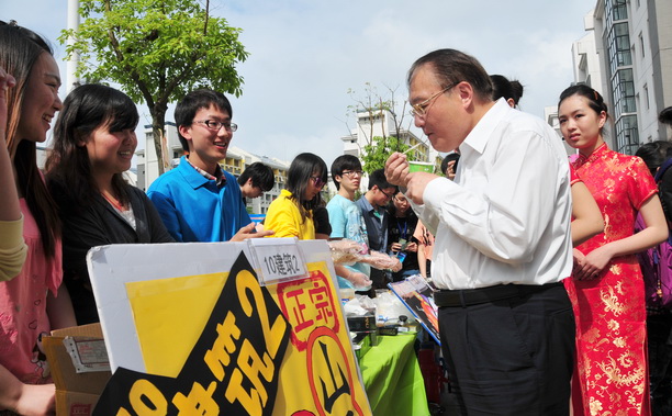 校长潘迎捷、学生处处长李兴华、食品学院党委书记陈江华、保卫处处长姜新耀、后勤服务中心副主任吴炯华、团委书记夏雅敏、外国语学院党委副书记戴辉明、爱恩学院党委副书记孙礼仕及各学院团委书记应邀参加了食品节开幕。