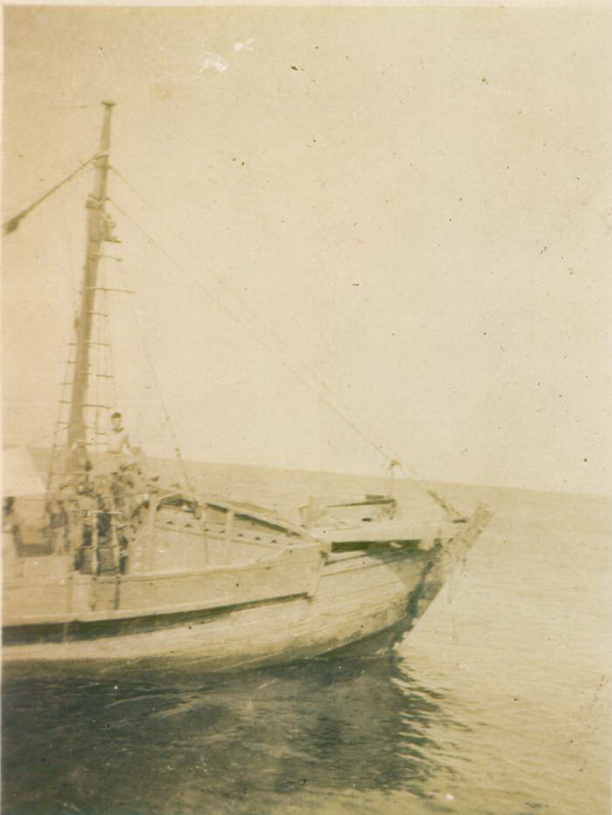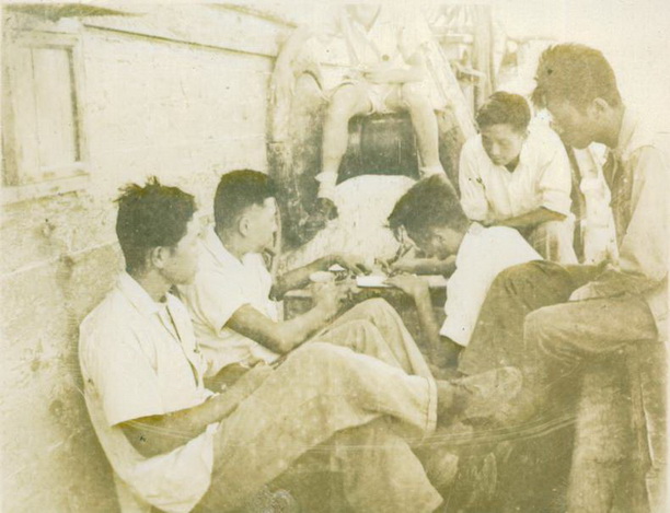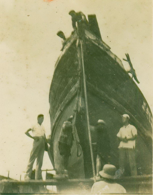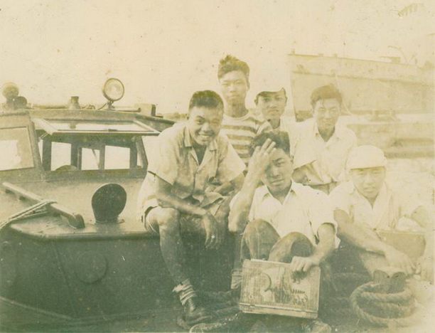 1950年利用暑期在浦东一船厂进行渔轮大修时期时学生乘坐小艇渡过黄浦江