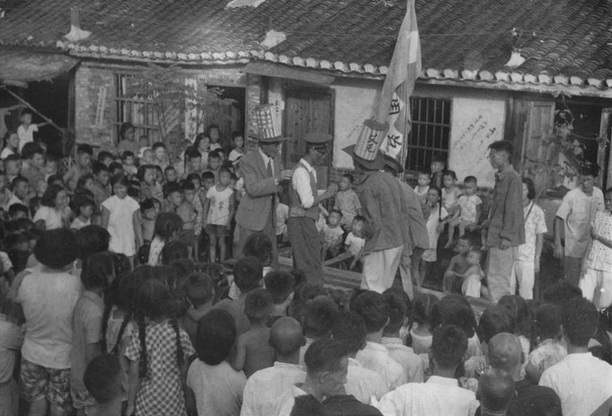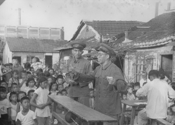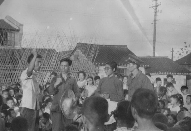 1958年9月4日,美国总统艾森豪威尔授权杜勒斯发表声明,声称美蒋“共同防御条约”的适用范围包括金门、马祖等沿海岛屿。9月6日,周恩来总理发表关于台湾海峡地区局势的声明,斥责杜勒斯的侵略行径,指出“台湾和澎湖列岛自古就是中国的领土”。“中国人民行使主权解放这些地区,完全是中国的内政。这是中国人民神圣不可侵犯的权利。”我校学子积极响应,坚决反对美帝国主义侵略我国领土,坚决拥护周总理的声明,为此展开了一系列的街头宣传,以下为当时的情景。