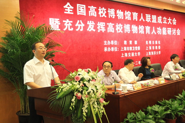 5月30日,由教育部、光明日报社主办,市教卫党委、市教委、上海交通大学、上海海洋大学承办的全国高校博物馆育人联盟成立大会暨充分发挥高校博物馆育人功能研讨会在沪召开。光明日报社副总编辑李春林、教育部思政司司长冯刚、市政府副秘书长翁铁慧、上海交通大学党委书记马德秀、市教委副主任李骏修等出席会议并在主席台就座。会议由教育部思政司副司长王光彦主持。