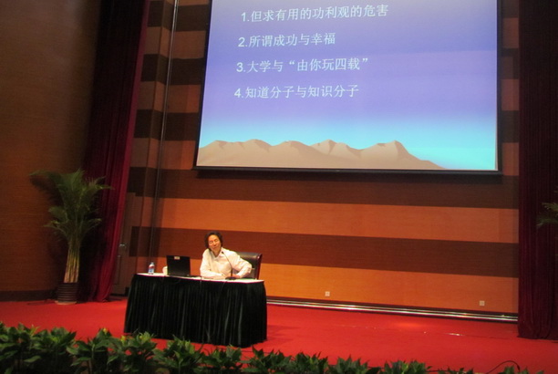 汪教授幽默诙谐的演讲风格,不时赢得会场内同学们的笑声和掌声。演讲结束后,同学们意犹未尽,纷纷与汪教授直接对话,提出自己的理解和见解。汪教授对同学们的问题都一一做了详细地回答,使同学们受益匪浅。听完讲座,大家一定悟道:在人生的漫漫征途中找寻自己的幸福心语一定要学会割舍和坚持,学会守住心灵的平实和宁静。